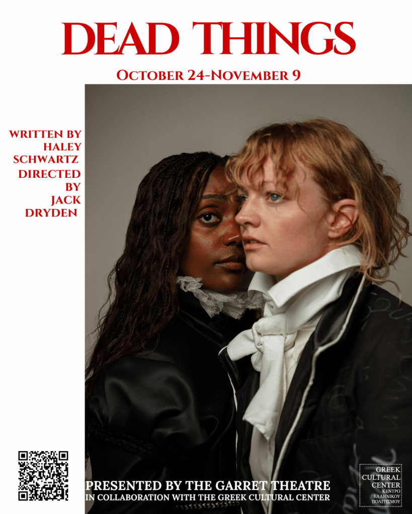 The Greek Cultural Center and The Garret Theatre present DEAD THINGS, a world premiere by Haley Schwartz.